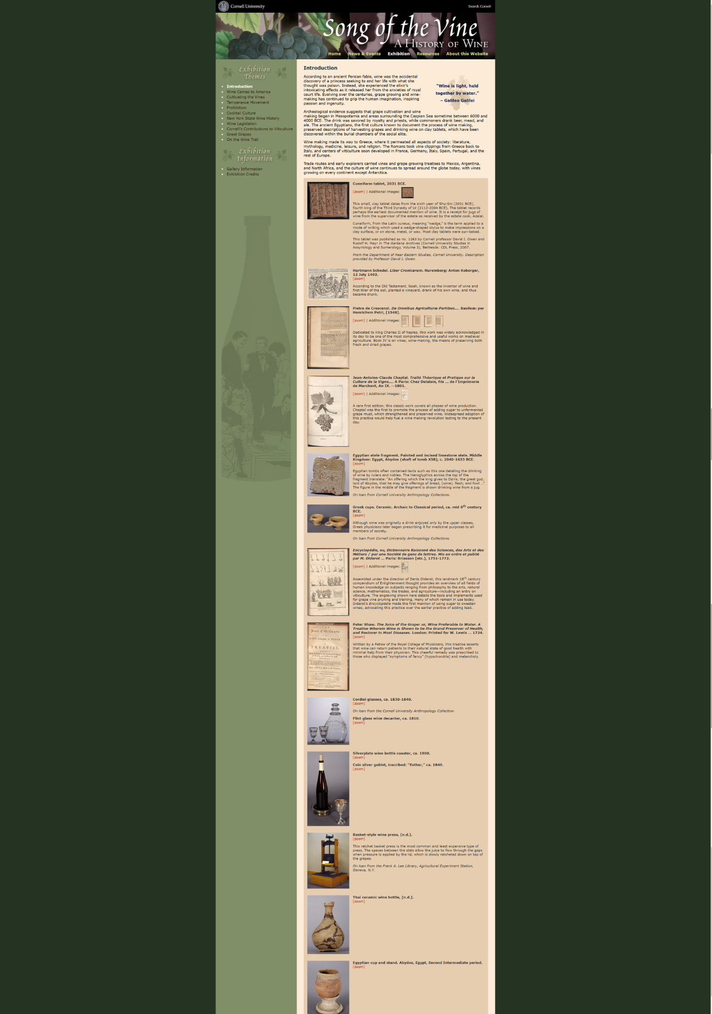 1998년, 코넬 대학교는 포도 재배자, 와인 메이커 및 관련 산업 참여자의 기록 보관 기록과 이러한 주제에 대한 희귀 도서, 사진 및 기타 문서를 수집하기 위해 Eastern Wine and Grape Archive(EWGA)를 설립했습니다. 디지털 아카이브 웹페이지는 2008년 오픈하였습니다. 코넬 도서관의 희귀 및 사본 컬렉션 부서에 보관된 Eastern Wine and Grape Archive의 목표는 다음과 같습니다. 미국 동부 지역의 와인과 포도 산업의 역사를 수집하고 보존합니다.