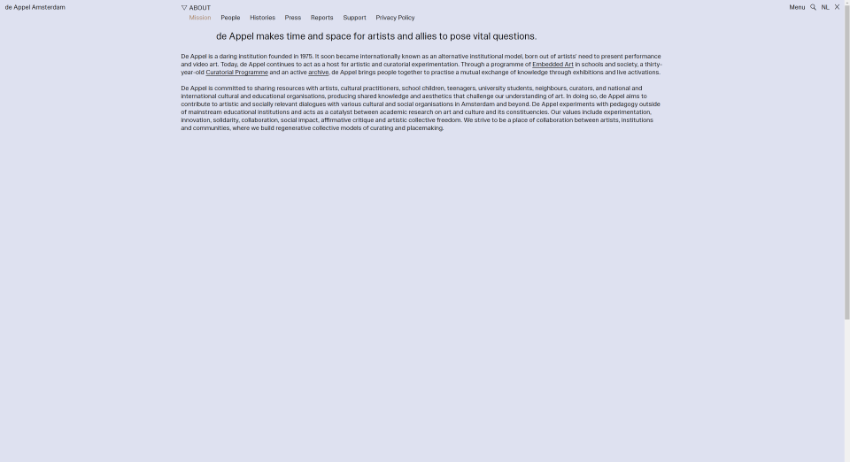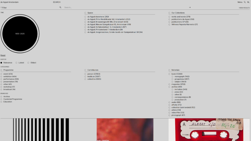 De Appel은 네덜란드 암스테르담에 위치한 현대 미술 기관으로, 예술 아카이브와 전시, 교육 프로그램을 통해 예술과 문화를 다각적으로 탐구합니다. 1975년에 설립된 de Appel은 실험적인 전시와 프로그램으로 널리 알려져 있으며, 특히 신진 예술가와 큐레이터에게 중요한 플랫폼을 제공합니다. 이곳의 디지털 아카이브는 수십 년간 축적된 예술 작품, 전시 자료, 비평 문서 등을 보관하고 있어 연구자와 예술 애호가들이 예술의 역사적 맥락과 현대 미술의 발전을 깊이 있게 이해할 수 있도록 돕습니다. de Appel은 전시뿐만 아니라 아티스트 레지던시, 큐레이터 프로그램을 통해 예술계의 발전을 지원하며, 지속적으로 아카이브를 확장해 예술적 유산을 보존하고 접근성을 높이고자 노력합니다.