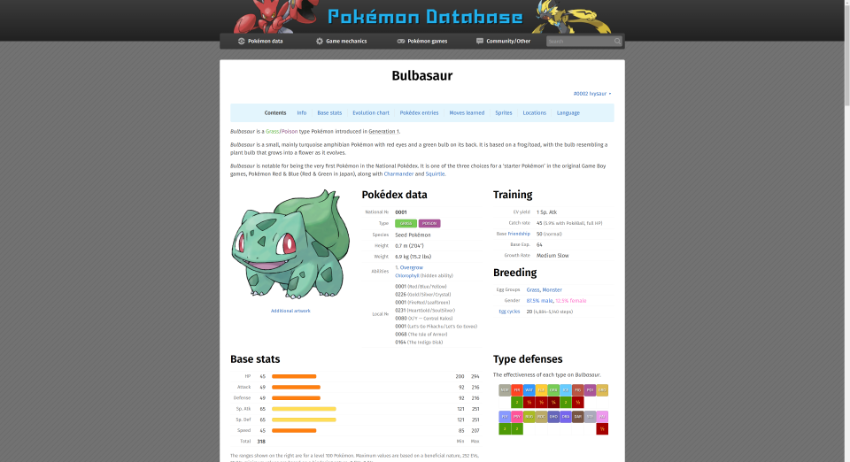 Pokémon Database는 포켓몬과 관련된 다양한 정보를 제공하는 디지털 아카이브입니다. 포켓몬의 도감 정보, 기술, 진화 경로, 등장 위치 등 상세한 데이터베이스를 구축하여 전 세계 포켓몬 팬과 연구자들에게 유용한 리소스를 제공합니다. 운영 주체는 개인 개발자들이 주도하는 커뮤니티 기반이며, 포켓몬과 관련된 최신 뉴스와 업데이트를 신속하게 반영하는 것이 특징입니다. 포켓몬 데이터베이스는 포켓몬의 속성, 기술, 게임 내 위치 등의 종합적인 정보를 포함하여 사용자들이 원하는 데이터를 빠르고 정확하게 찾을 수 있도록 지원합니다.