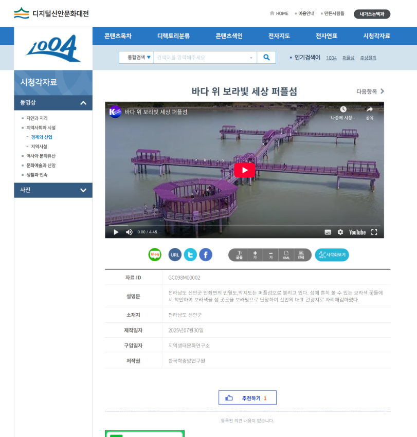 아카이브 방문하기 디지털신안문화대전은 한국학중앙연구원과 신안군이 협력하여 구축한 지역문화 아카이브로, 신안 지역의 역사,문화,자연,생활 전반을 주제별·분야별로 체계화하여 수록한 디지털 아카이브이다.