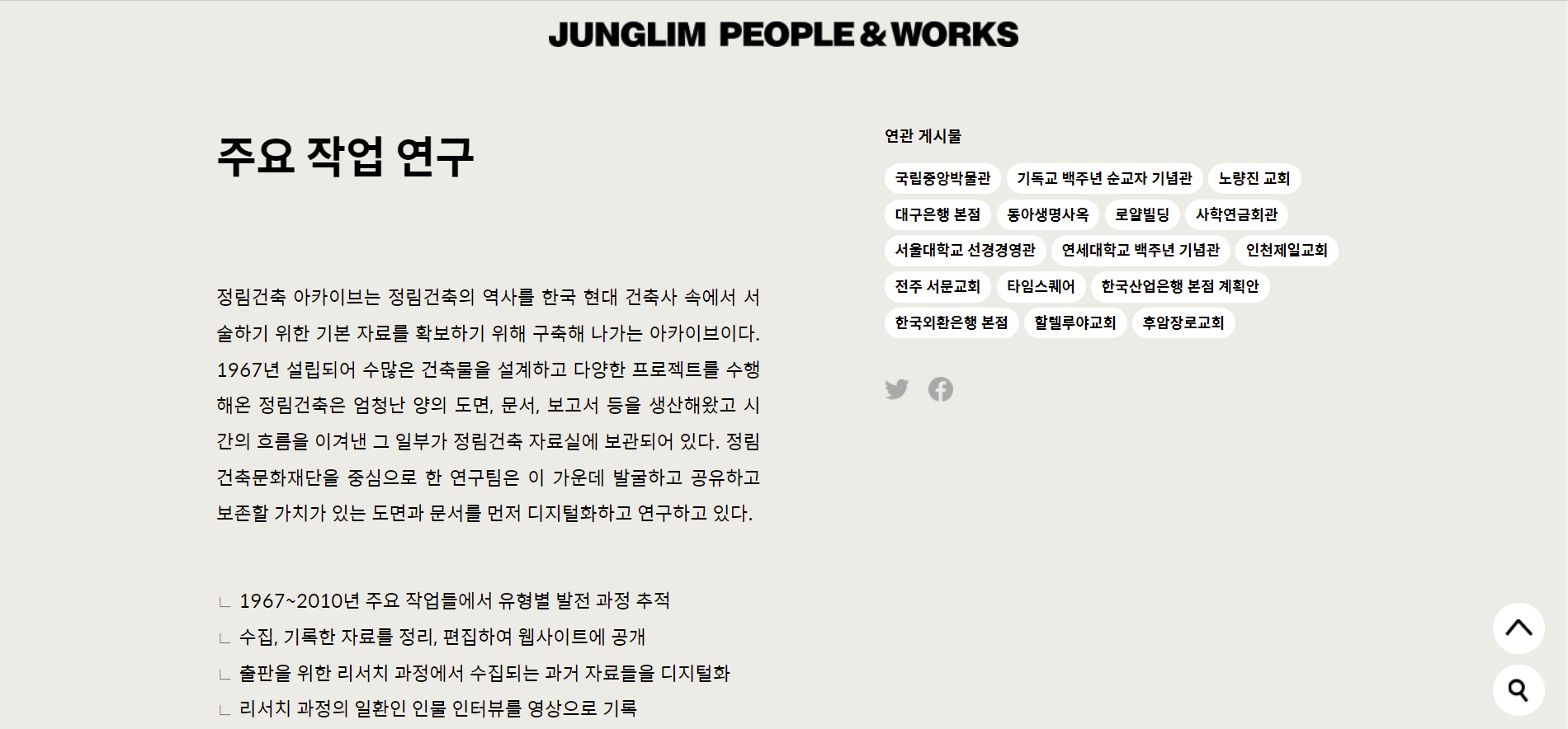| 변경전 내용 | 정림건축 피플 앤 웍스는 2017년 출간된 <김정철과 정림건축 1967~1987>을 확장하고 보완해, 영상, 디지털 아카이브, 출간 등의 다양한 매체로 퍼블리싱하는 프로젝트다. 지난 10여 년 동안 한국 건축계의 주요한 흐름 가운데 하나로, 1930년대 생 건축가들에 대한 구술집, 회고록, 작품집 등의 출간을 꼽을 수 있다. 한국에서 건축교육을 받고 60년대에 경력을 시작한 1세대 건축가들의 역사화 작업이라고 하겠다. 이른 타계로 충분한 구술과 |
