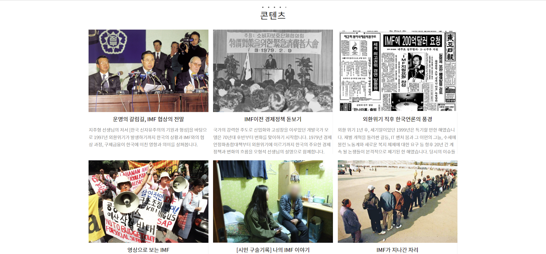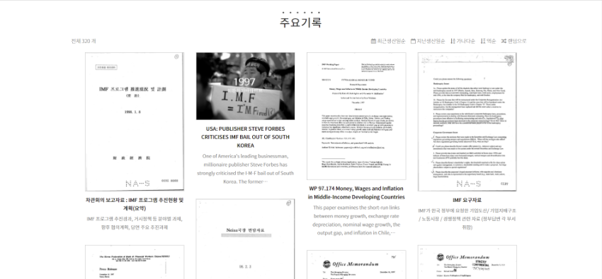 | 변경전 내용 | 우리가 사는 세상은 왜 '이 모양'이 되었나 97년 외환위기에 대한 기록을 모으는 작업은 이 단순한 질문에서 출발했습니다. 양극화, 불안정한 노동, 노인빈곤과 청년세대의 전반적인 불안. 지금 한국사회가 겪고 있는 문제들의 근원이 무엇일까. 1997년부터 2001년까지의 IMF관리체제는 이러한 변화의 중요한 기점이었지만, 우리는 이 ‘흑역사’를 제대로 마주한 적이 없었습니다. 역대급 협상의 기록, 다 어디에 있나 투명사회를 위한 정보공개센터는 2 | ||||||||||||