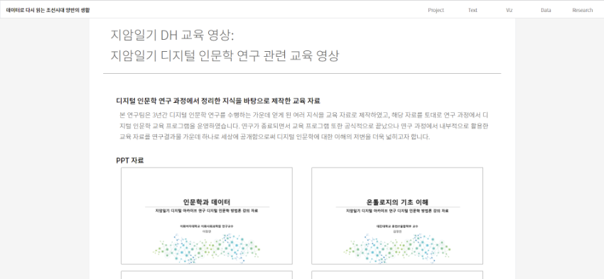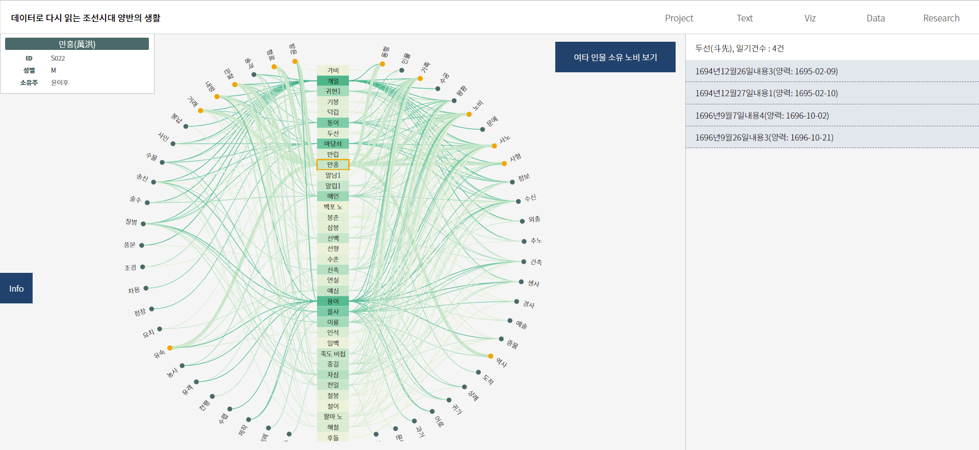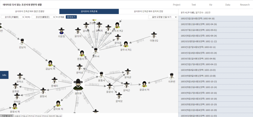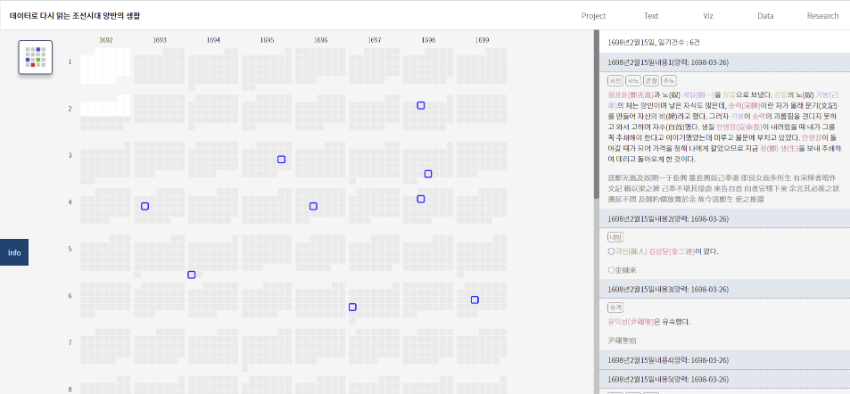지암일기 원문을 비롯하여 지암일기에 수록된 운문과 산문 목록 등의 텍스트를 살펴볼 수 있으며, '일상 생활, 사람, 장소, 사건, 노비'로 나눈 각각의 주제를 시각화하여 정리한 결과물 또한 살펴볼 수 있습니다.