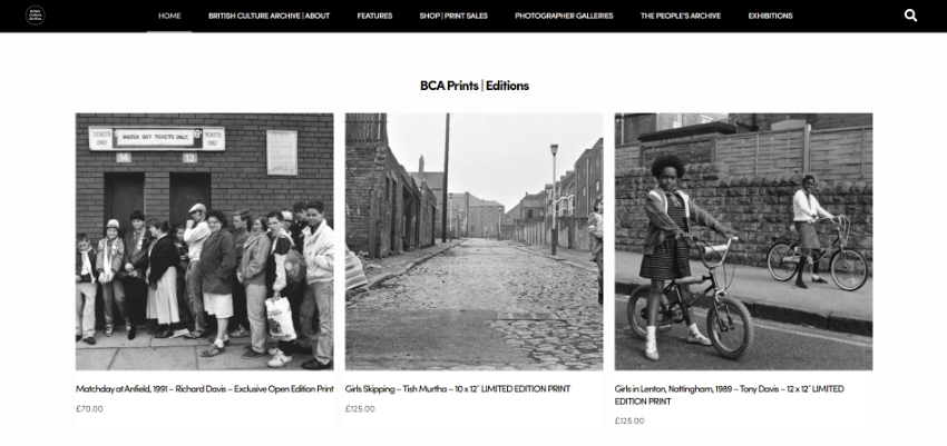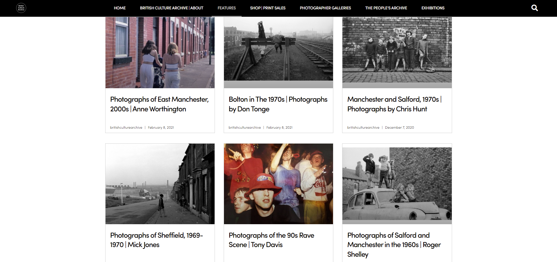 British Culture Archive의 온라인 갤러리, 커뮤니티 워크숍 및 전시회는 20세기의 영국 다큐멘터리 사진을 보여주고 조명합니다. 다수의 훌륭한 작가들과 함께 하고 있을 뿐만 아니라, 아직 더 많은 대중들에게 보여지지 못한 주요 사진 플랫폼입니다.