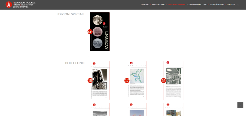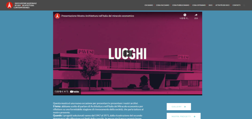 지속적으로 업데이트 되는 아카이브는 이탈리아 전반에 흩어져 있는 다큐멘터리 컬렉션을 식별하고 찾을 수 있는 필수적인 도구입니다. 학생과 학자들에게 현대 이탈리아 건축 분야에 대한 연구를 더 풍부하게, 더 쉽게 만들 수 있습니다.