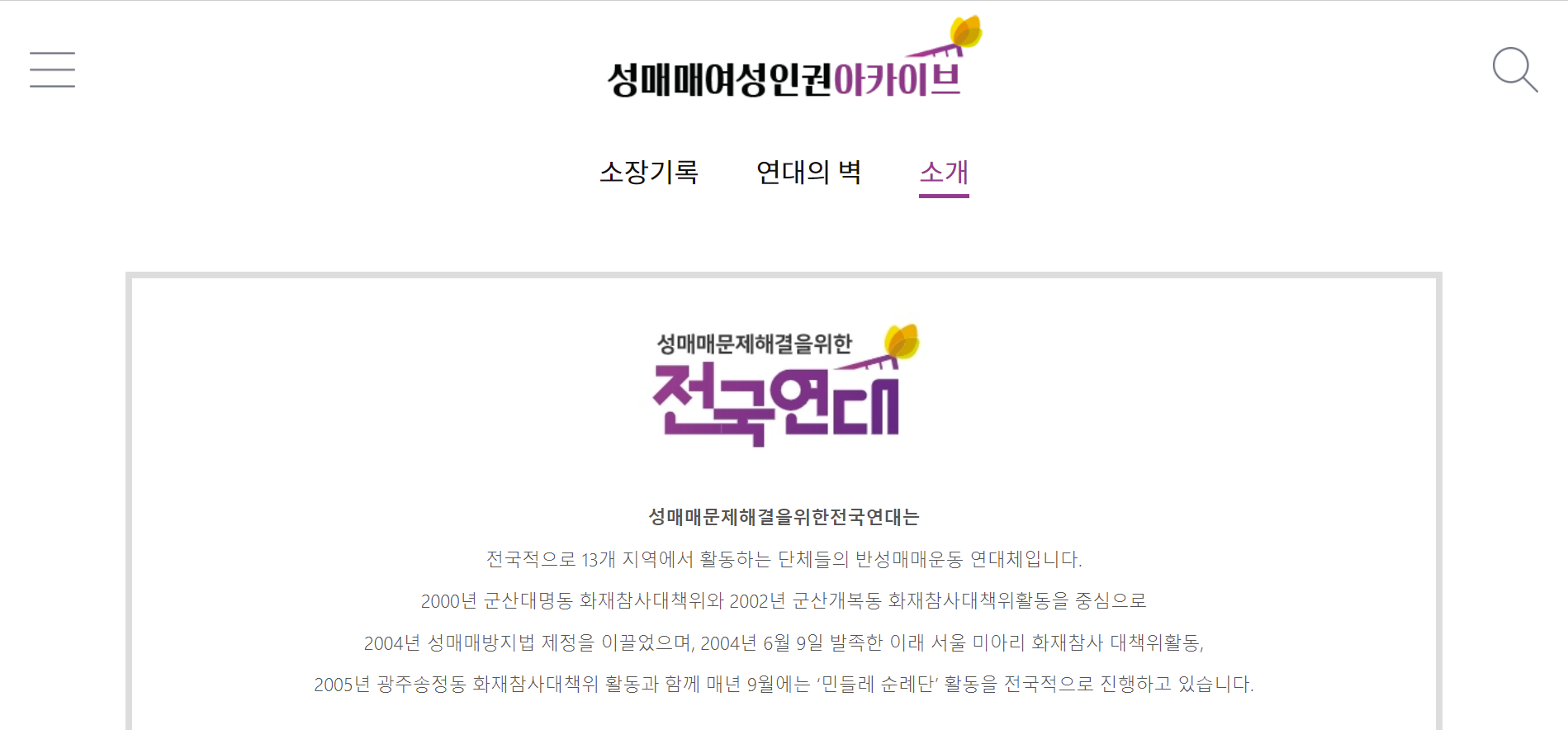 성매매문제해결을위한전국연대는 전국적으로 13개 지역에서 활동하는 단체들의 반성매매운동 연대체입니다. 전국연대는 여성에 대한 폭력이자 성적착취행위인 성매매를 반대하고 성산업을 옹호하면서 수요를 창출하는 그 어떠한 행위도 묵과하지 않습니다. 우리는 우리사회 여성과 약자에 대한 폭력을 반대하고 성매매여성 비범죄화를 위한 활동을 진행합니다.
