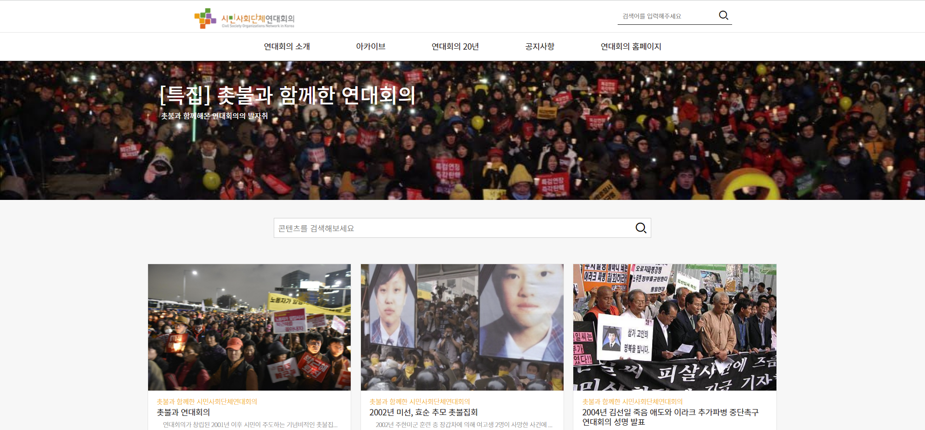 시민사회단체연대회의 아카이브는 |