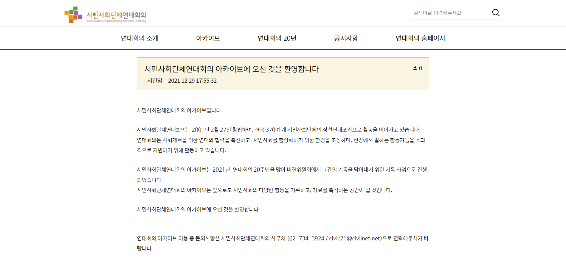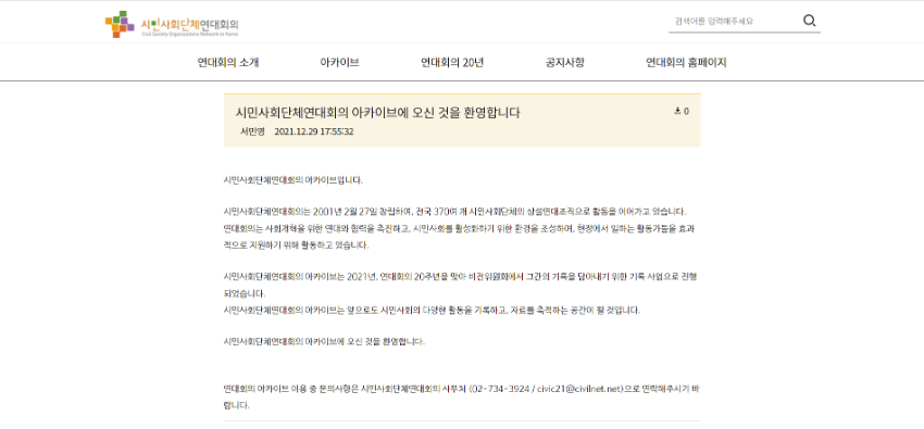 시민사회단체연대회의 아카이브는 ","i_after":"