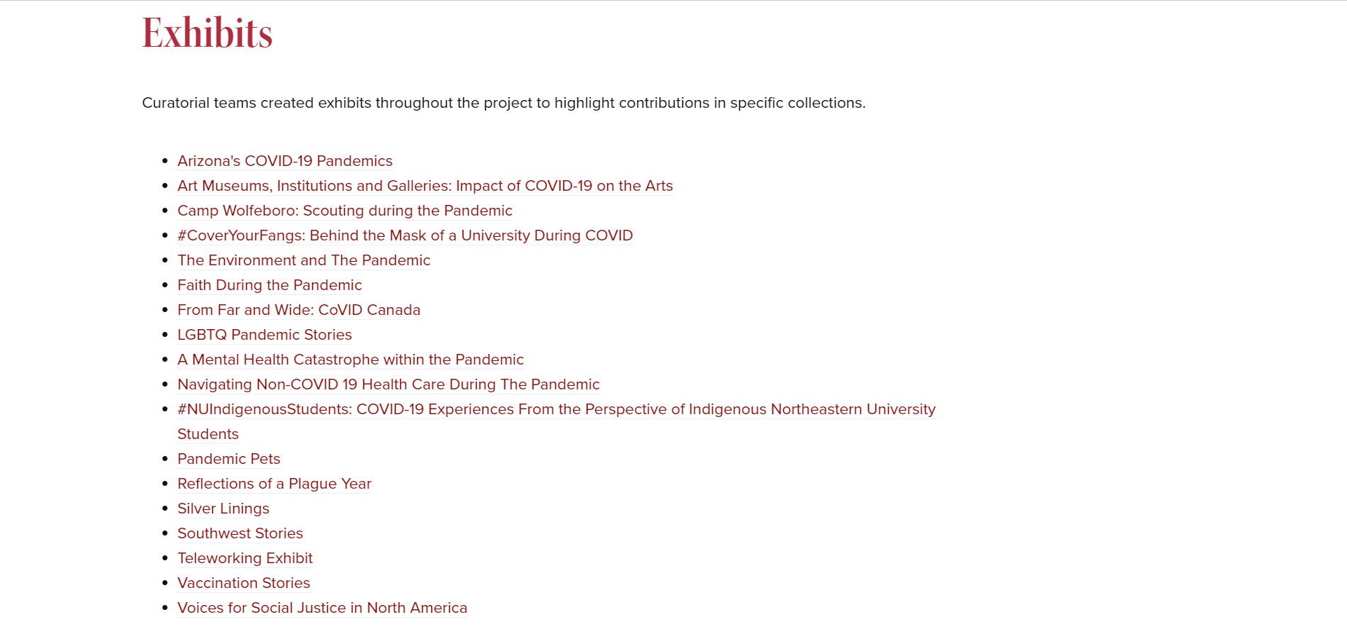 학생들과 교육자들에게 아카이브 자료를 제공하며, 코로나19 팬데믹에 대한 사람들의 이야기를 모으고 공유하며 해석함을 통해 다양한 공동체들의 화합을 도모하고 영향력을 실어줄 수 있는 공간입니다.