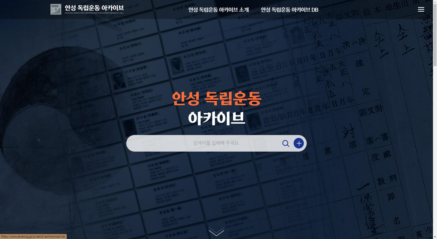 안성 독립운동 아카이브는 안성 독립운동의 역사적 자료를 데이터베이스화하여 구축. 정리하며, 사용자들이 편의에 따라 열람하고, 학술연구 및 교육자료로 활용할 수 있도록 제공하고 있습니다. 아카이브에서 제공하는 자료들에는 안성3·1운동기념관이 보유하고 있는 범죄인명부를 포함한 여러 문서, 사진, 동영상, 지도파일이 있고, 국가기록원과 국사편찬위원회에서 소장하고 있는 판결문 형사사건부, 3·1운동피살자명부, 신문조서, 일제감시대상인물카드 등 안성지역과 관련한 여러 자료들을 협조 받아 제공하고 있습니다. 아울러 안성3·1운동기념관은 꾸준한 학술연구를 통해 안성 독립운동자료를 축적해나가고 있습니다. 안성 독립운동 아카이브는 안성의 독립운동을 널리 알리고 공유함으로써 역사와 현재를 잇는 의미 있는 공간을 만들어가고자 합니다.