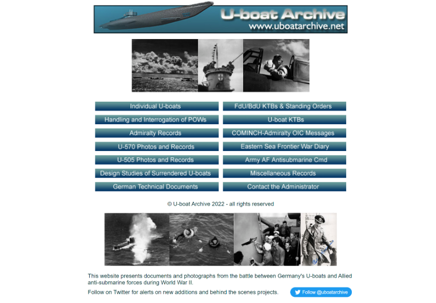 유보트 아카이브 웹사이트는 제2차 세계대전 당시 독일 유보트와 연합군 대잠수함 사이의 전투를 담은 문서와 사진을 소개하고 있습니다.
