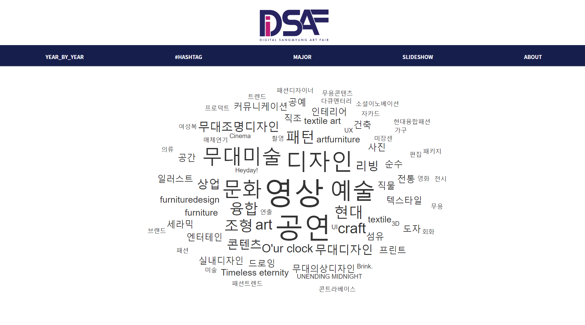 DiSAF에서는 상명의 젊은 예술가들이 대학 생활에서 익힌 지식, 경험 그리고 열정이 농축된 졸업작품을 모아 전시합니다.