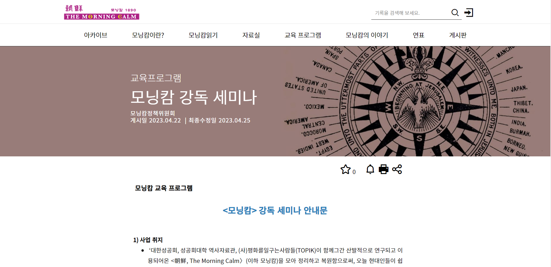 - 대한성공회 선교 역사를 수집, 정리, 분류, 연구하는 활동을 이어가며, <모닝캄 디지털 아카이브>를 더 발전시킬 수 있는 아키비스트 양성하겠습니다.