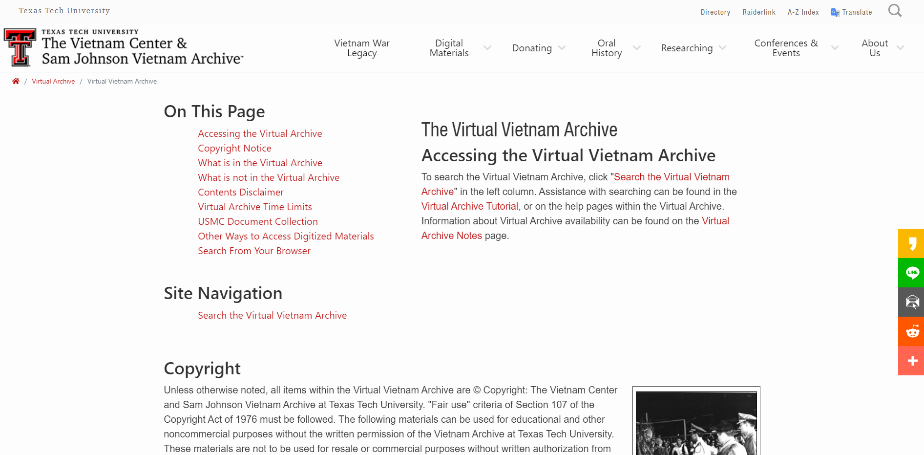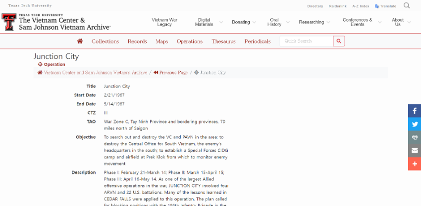 1989년, 텍사스에 있는 베트남 참전용사들이 모여 베트남에서의 경험에 대해 논의하고 베트남 기록 보관소를 만들기로 결정했습니다. 이 아카이브는 베트남 전쟁과 관련된 자료를 수집하고 보존하여 개인의 경험을 보존하고 널리 이해할 수 있도록 하였습니다. Virtual Vietnam Archive는 학생들과 학자들을 포함한 관심 있는 사람들이 직접 연구를 수행하고 베트남 전쟁의 복잡성을 이해하며 참전 용사들의 경험을 접할 수 있는 중요한 정보 출처입니다.