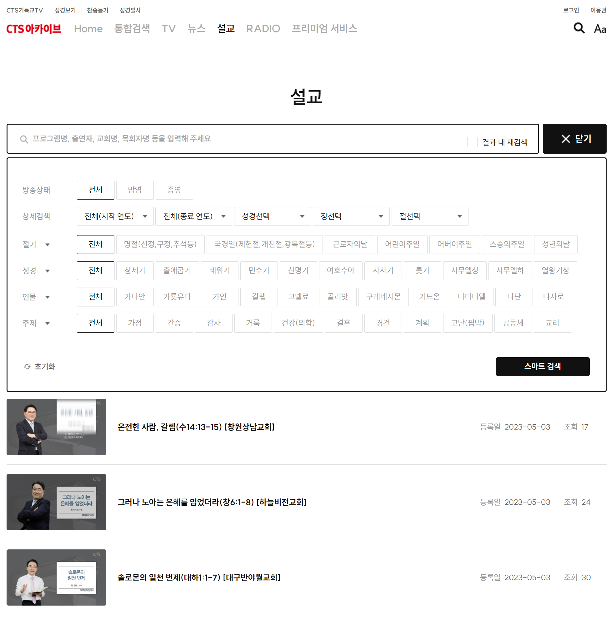 CTS 아카이브는 기독교 콘텐츠 보유 1위 사이트로