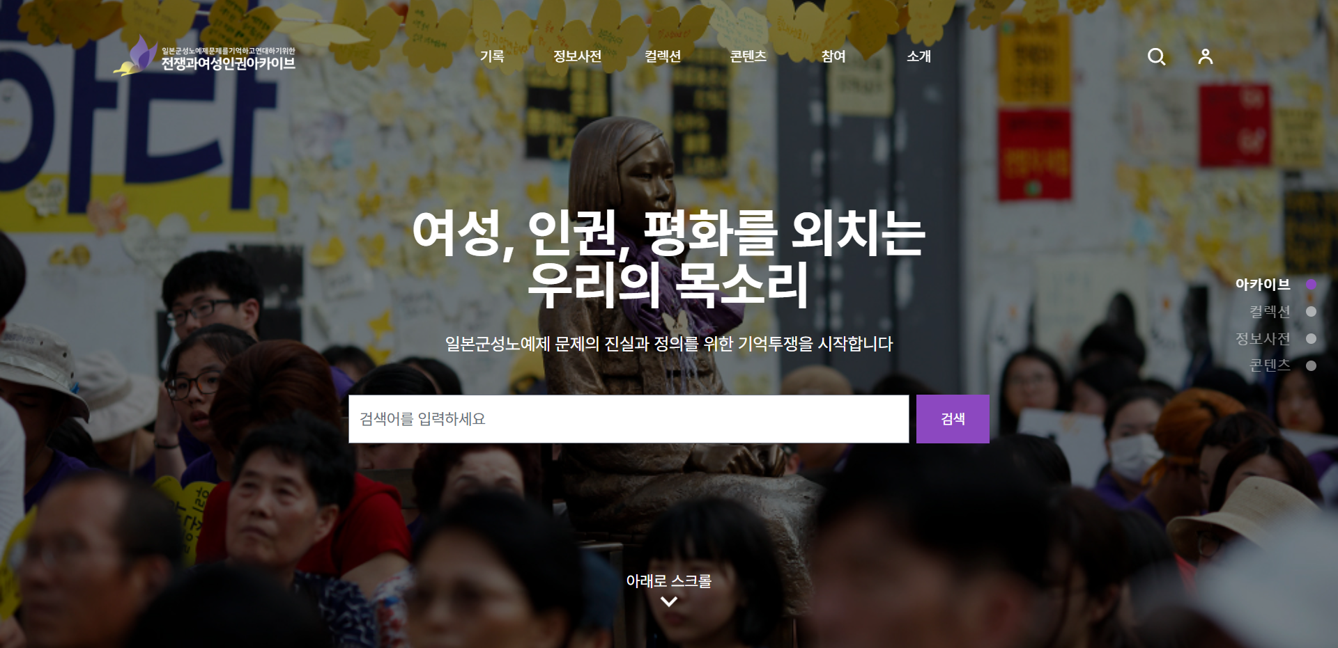 문제 해결은 문제 인식과 인정에서 시작하고, 재발을 막기 위해서는 ‘권력’을 견제하는 우리의 연대가 끊임없이 성장해야 합니다. 전쟁과여성인권아카이브는 이를 위해 일본군성노예제 문제와 해결운동의 역사를 전 세계 시민들의 기억에 심고 운동의 재생산을 모색하는 아카이브가 될 것입니다.