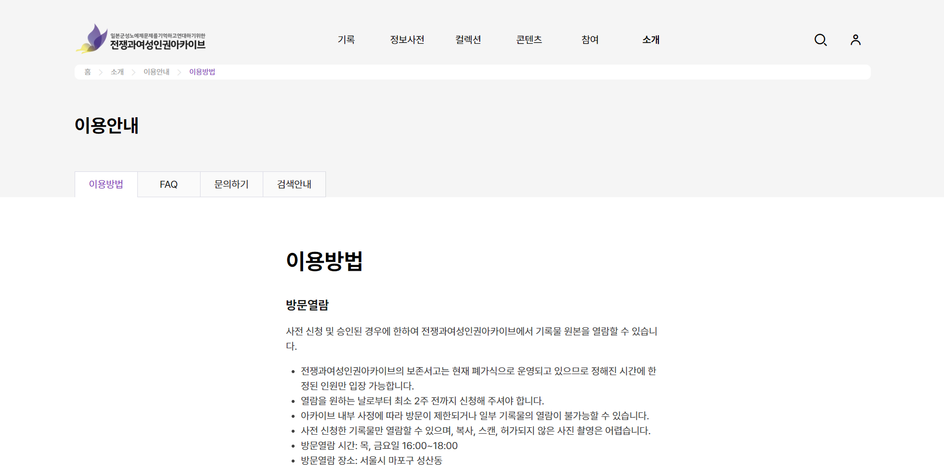 아카이브 방문