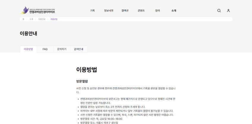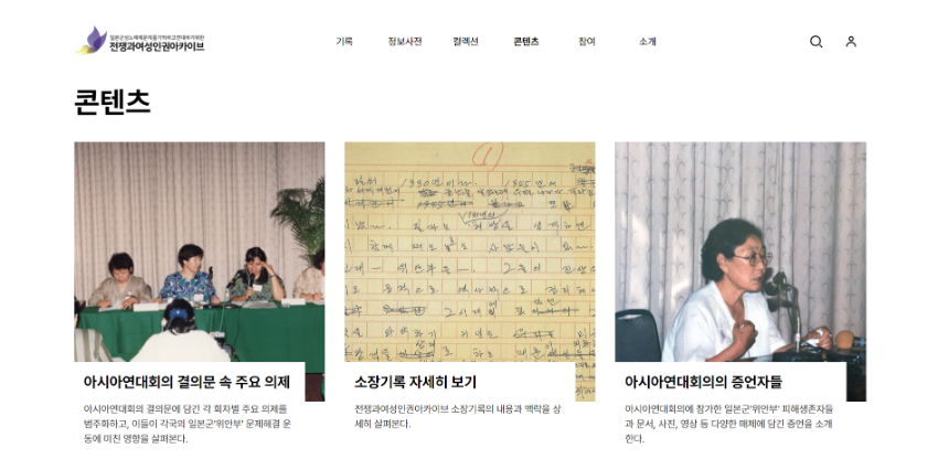 전쟁과여성인권아카이브는 정의기억연대가 소장하고 있는 역사 자료 및 피해생존자들의 기록, 일본군성노예제 문제해결 운동기록을 정리하고 다국적 언어로 서비스하는 동시에, 국내외 흩어진 관련 자료를 수집하고 기증받아 컬렉션을 확장해 나갈 계획입니다. 아카이브가 모은 기억과 기록이 국경과 물리적 거리를 넘어 온라인을 통해 전 세계 시민들에게 닿고 미래세대로 전해지길, 보다 많은 사람들이 일본군성노예제 문제해결과 여성·인권·평화를 함께 외치고 역사부정과 왜곡에 맞서는 기억공동체를 이루길 기대합니다. 이 길에 많은 분들의 관심과 참여를 간곡히 부탁드립니다.