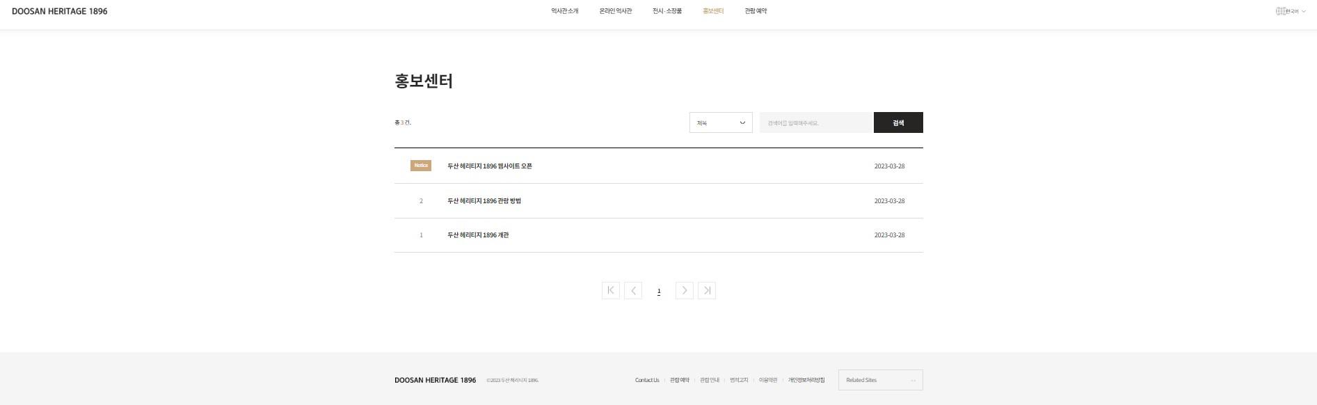 두산 헤리티지 1896은 1896년에 창업한 대한민국 최고(最古) 기업 두산그룹 역사를 기록한 홈페이지이다.